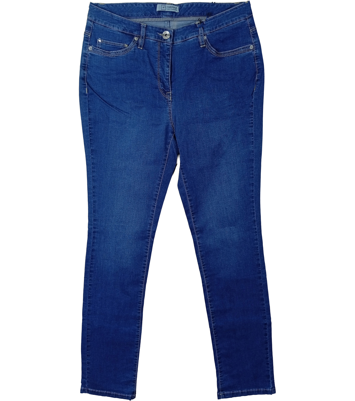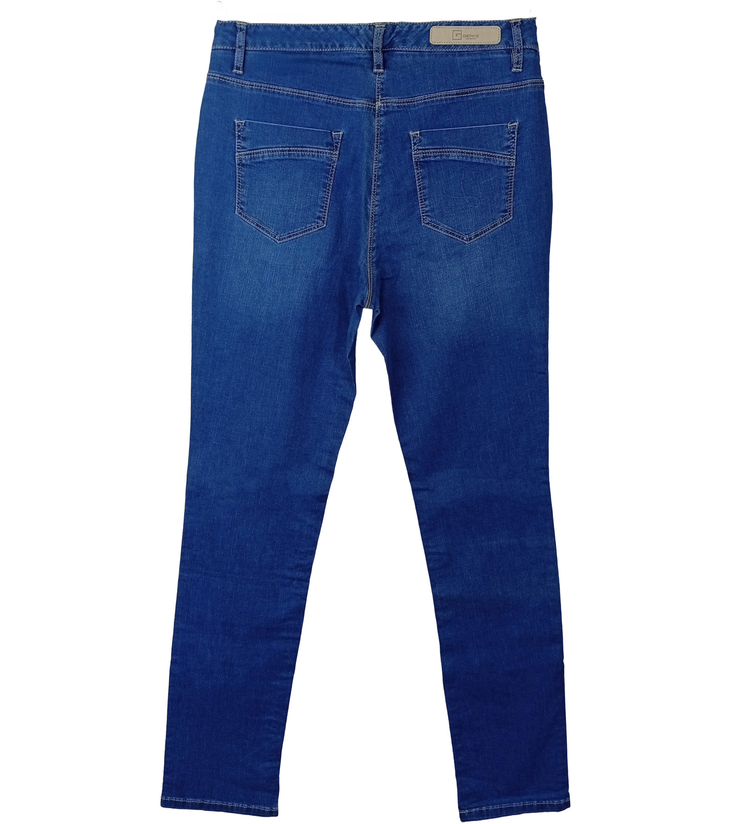 Dámské džíny Gerke Loretta jsou vyrobeny z lehkého strečového denimu ve středně modrém odstínu. Mají pohodlný střih se středním pasem, úzkými nohavicemi a klasickým zapínáním na zip a knoflík. Nechybí pět funkčních kapes, zadní kapsy jsou doplněny decentním prošitím. Díky pružnému materiálu se dobře přizpůsobí postavě a zajišťují komfort při každodenním nošení.