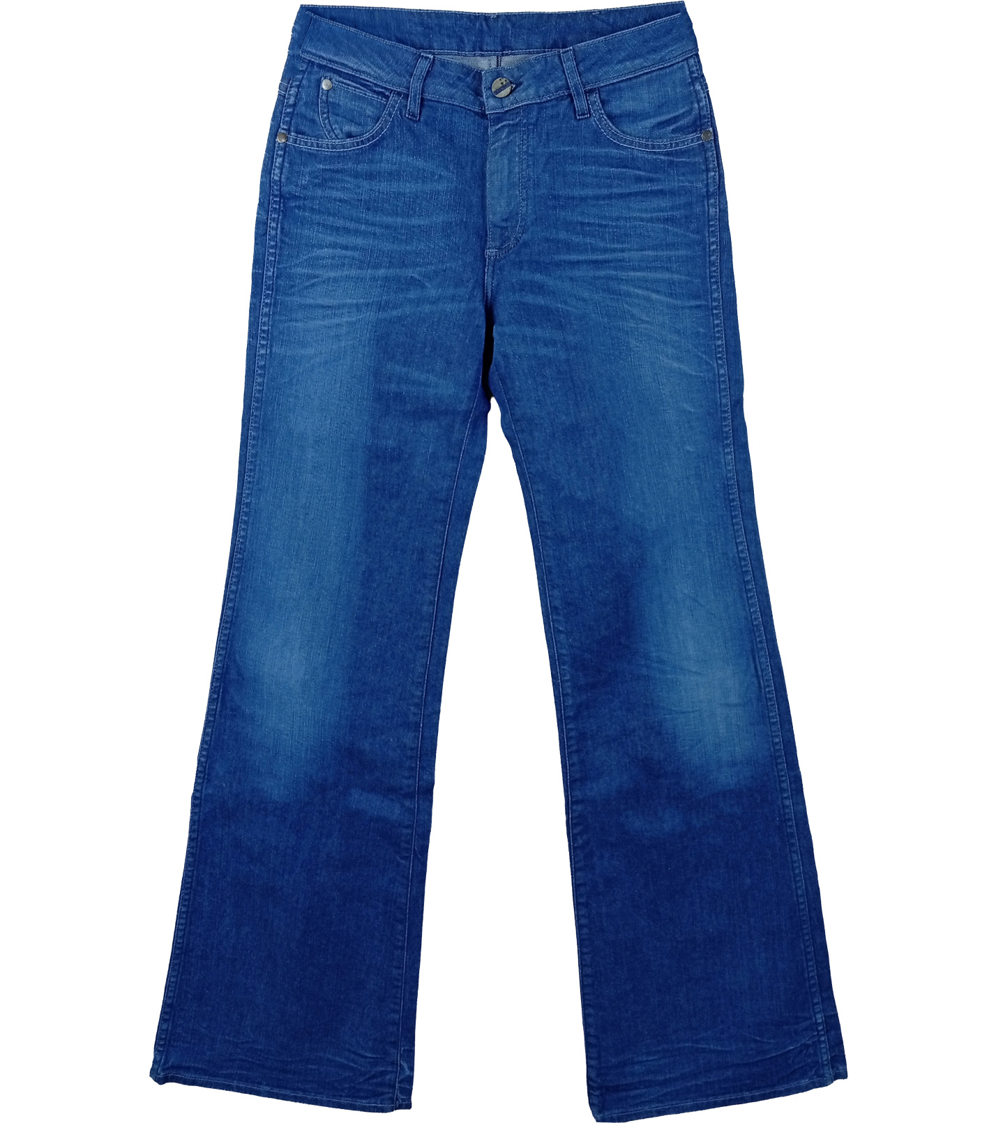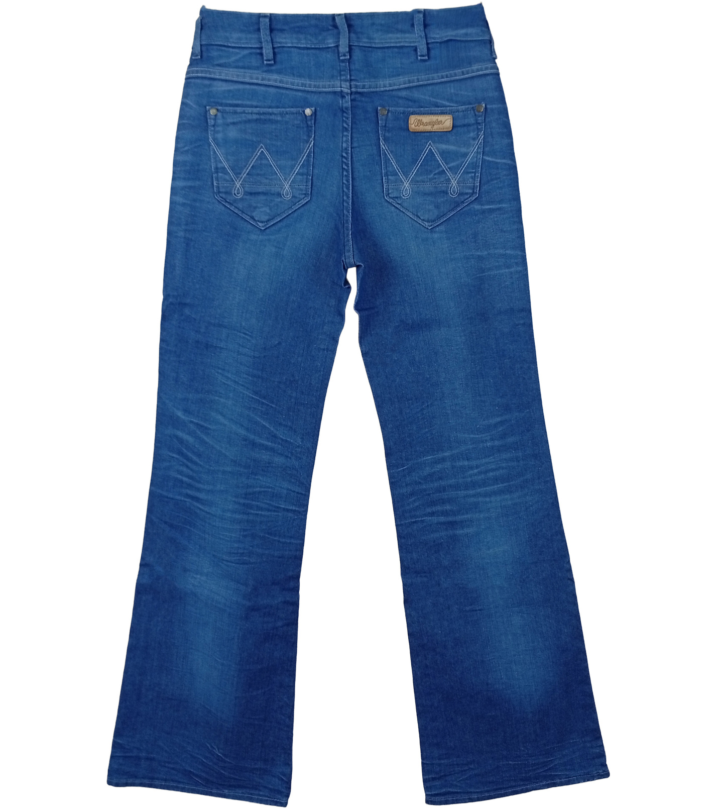 Světlý modrý denim s jemným vyšisováním na přední straně působí ležérně a snadno se kombinuje s tričky, košilemi i elegantnějšími kousky. Zadní kapsy s typickým „W“ prošitím a koženým štítkem Wrangler potvrzují kvalitu a originalitu značky.