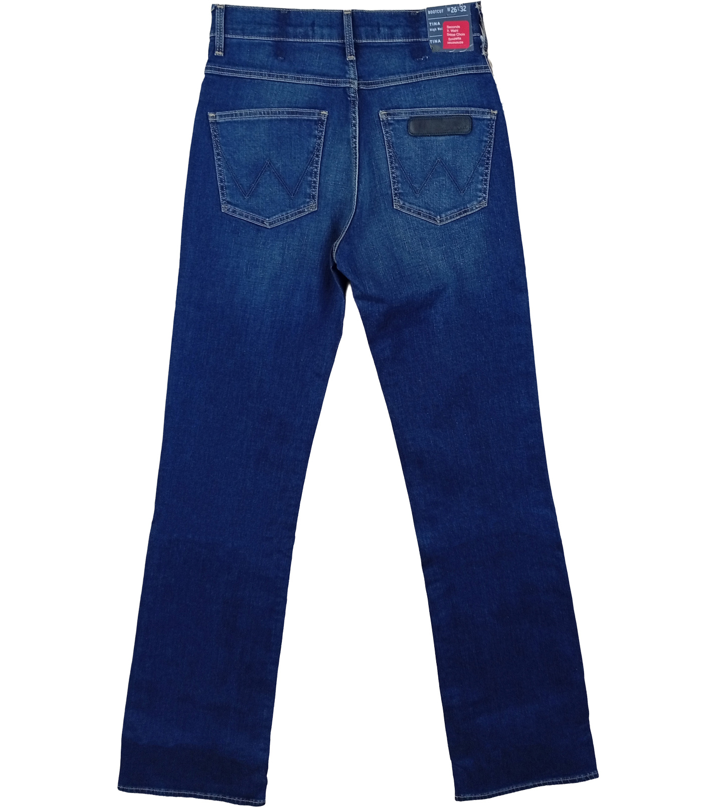 Tmavě modrý denim s decentním vyšisováním vpředu dodává džínům moderní vzhled. Zadní kapsy s typickým „W“ prošitím a koženým logem Wrangler dokazují jejich originalitu a kvalitu.