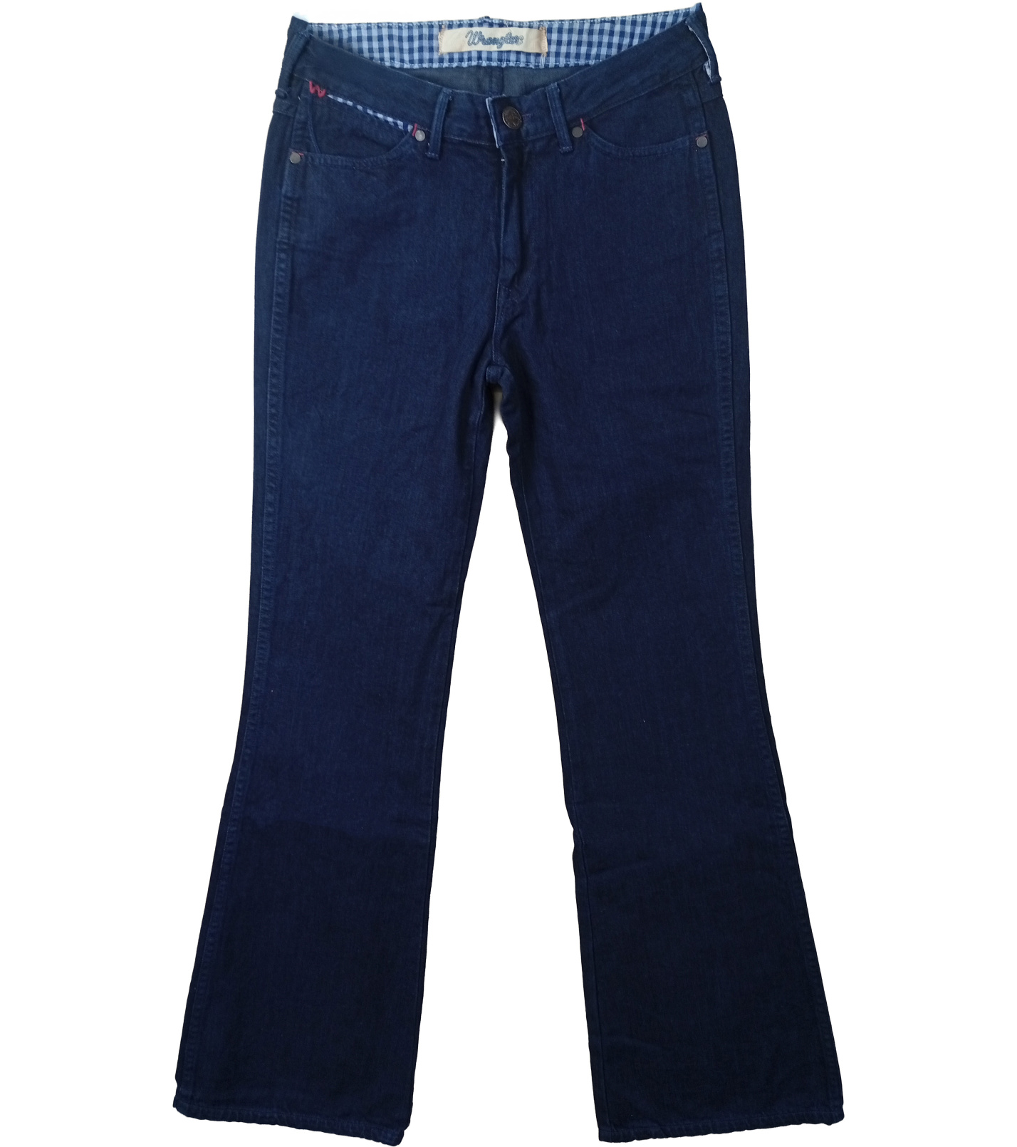 Dámské džíny Wrangler Joni Flare v tmavě modrém denimu bez výrazného oprání představují univerzální a elegantní kousek, který se hodí pro každodenní nošení i speciální příležitosti. Vnitřní lem v kostkovaném vzoru dodává džínům originální detail, který podtrhuje jejich osobitý styl.
