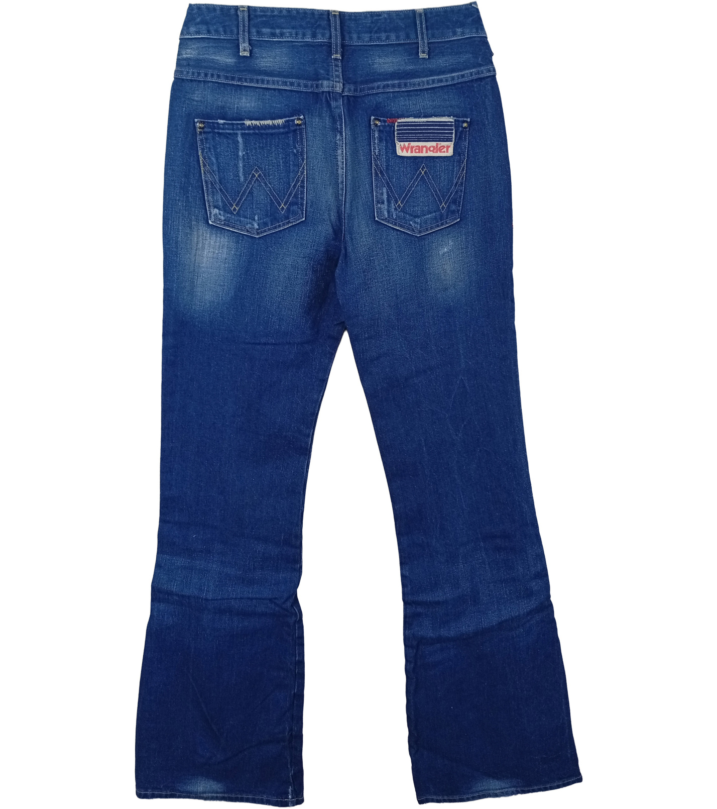 Kalhoty mají klasické zapínání na zip a knoflík, přední kapsy s malou kapsičkou a dvě zadní kapsy s ikonickým prošíváním „W“. Zadní část navíc zdobí nápadná nášivka Wrangler, která podtrhuje originální design tohoto modelu.