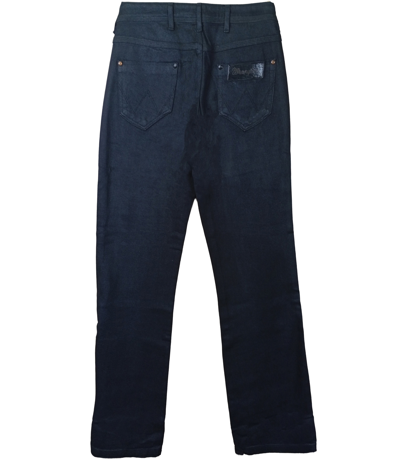 Kalhoty jsou vybaveny klasickým zapínáním na zip a knoflík, dvěma předními kapsami a dvěma zadními s typickým prošíváním ve tvaru „W“. Na zadní straně nechybí ani kožený štítek Wrangler, který je zárukou kvality a originality.