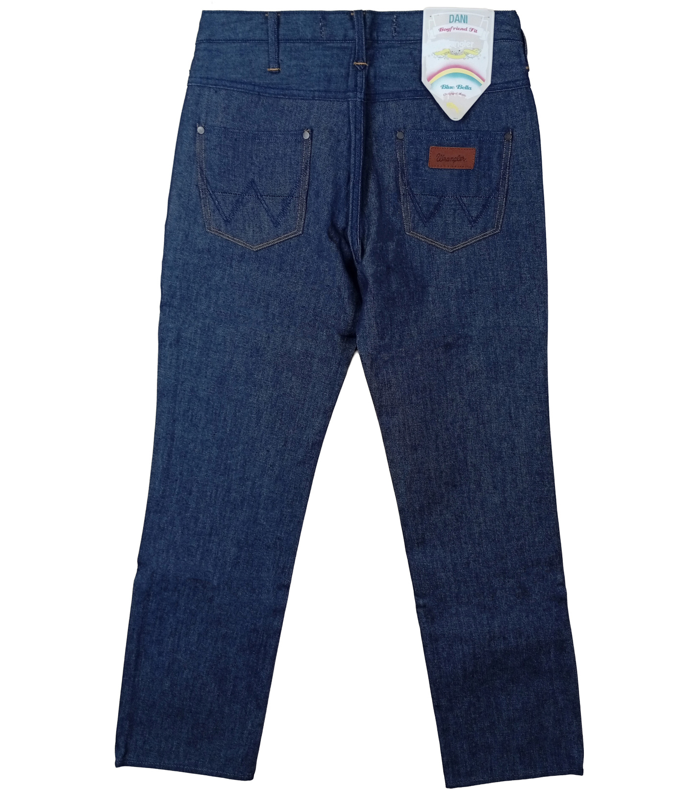 Džíny mají klasické zapínání na zip a knoflík, přední kapsy včetně malé kapsičky na mince a dvě zadní kapsy s ikonickým prošíváním „W“. Nechybí ani kožený štítek Wrangler, který podtrhuje jejich autentický charakter.