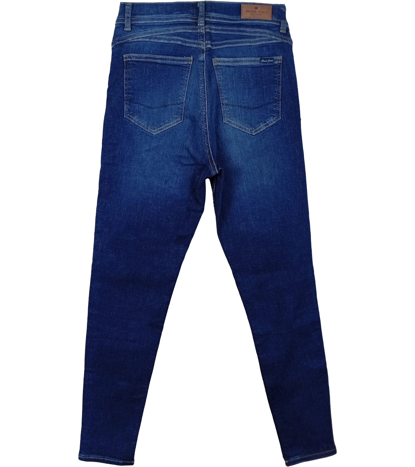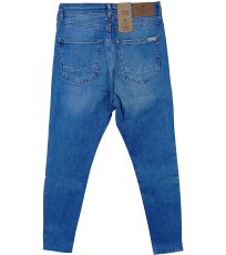 Šedé džíny se zapínáním na zip. Džíny jsou užšího střihu s vysokou výškou sedu a užšími nohavicemi. Značkové džíny mají dvě klasické přední a dvě zadní kapsy s jednou menší kapsičkou, která je součástí pravé přední kapsy. Kožená cedulka se značkou je našita v zadní části kalhot. Kalhoty jsou lehce zesvětleny v oblasti stehen.