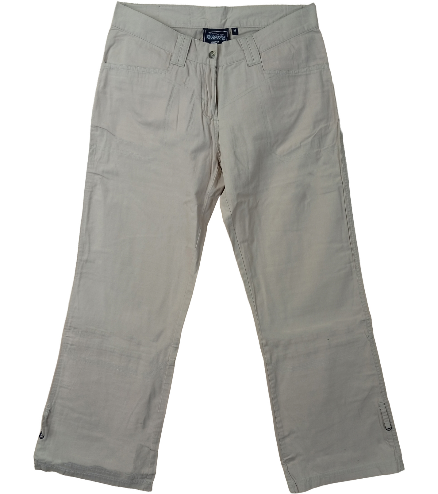 Tyto dámské kalhoty jsou pohodlnou a praktickou volbou pro aktivní dny i běžné nošení. Kalhoty mají klasické zapínání na knoflík a zip, poutka na pásek a ergonomicky tvarované švy, které podporují volnost pohybu.