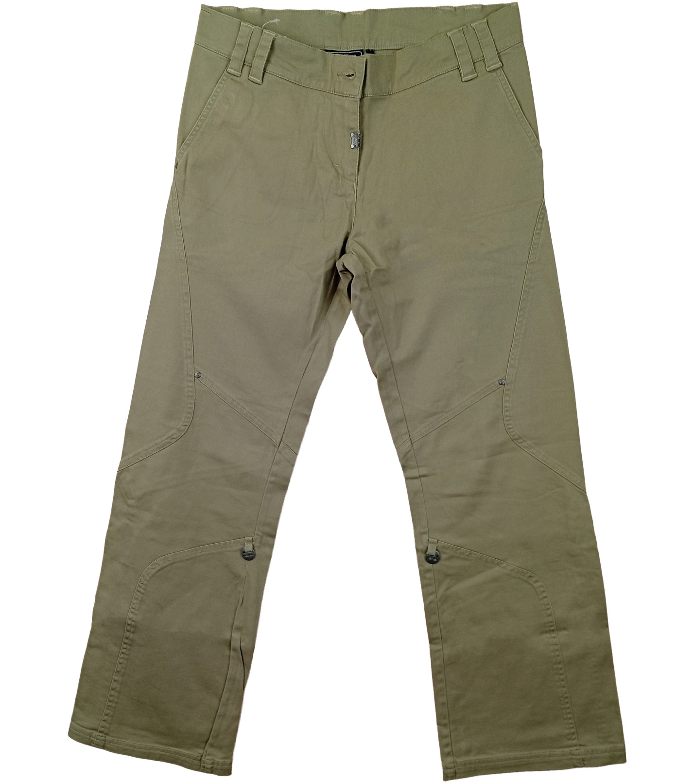 Zelené outdoorové kalhoty v praktickém, funkčním střihu určeném pro aktivní pohyb. Pevný a odolný materiál zajišťuje komfort i při náročnějším používání, zatímco ergonomicky tvarované švy v oblasti kolen podporují volnost pohybu. Kalhoty mají klasické zapínání, poutka na pásek a zesílené části pro vyšší odolnost. Díky jednoduchému designu a funkčnímu provedení jsou ideální pro turistiku, cestování i každodenní nošení v přírodě.