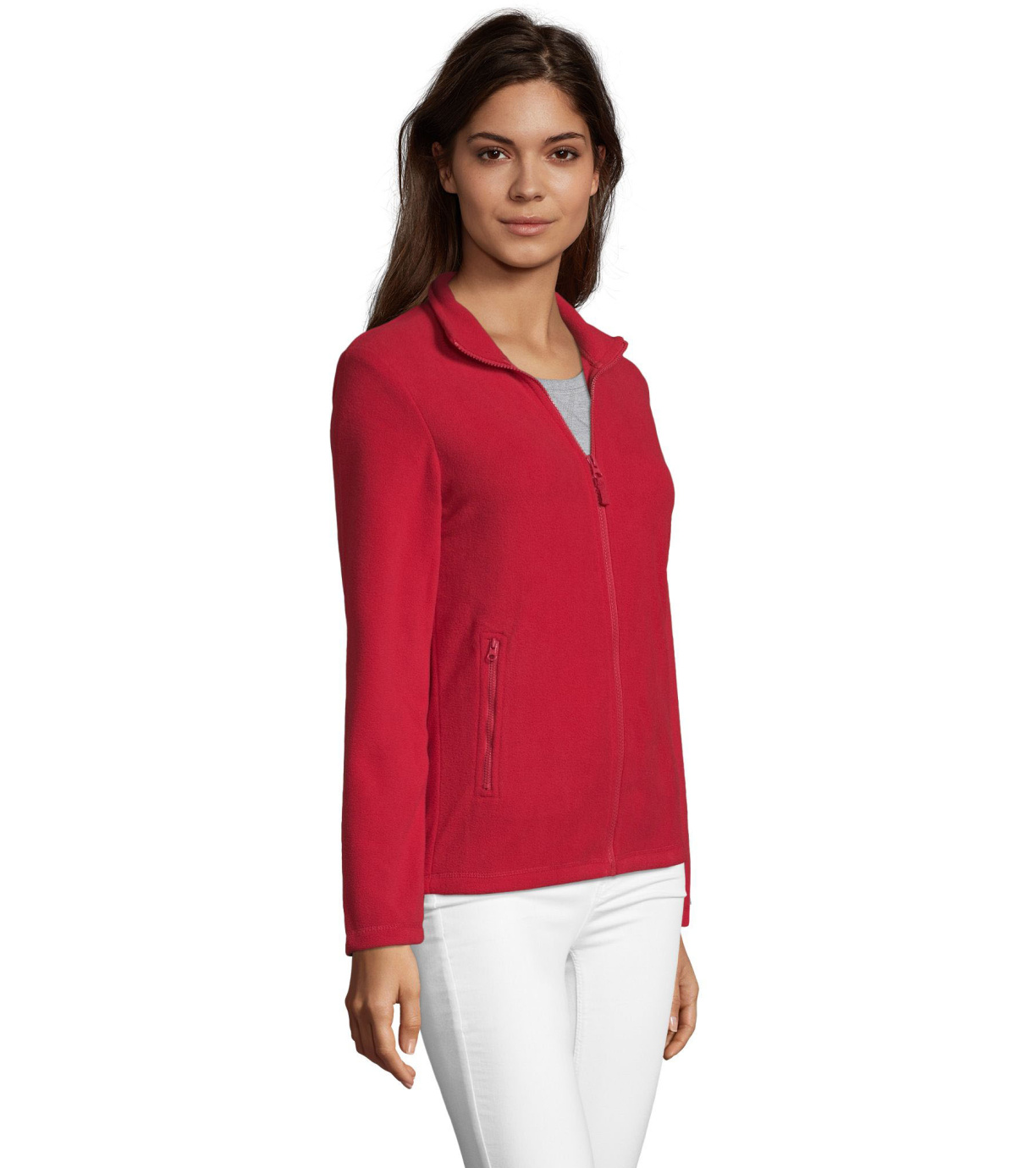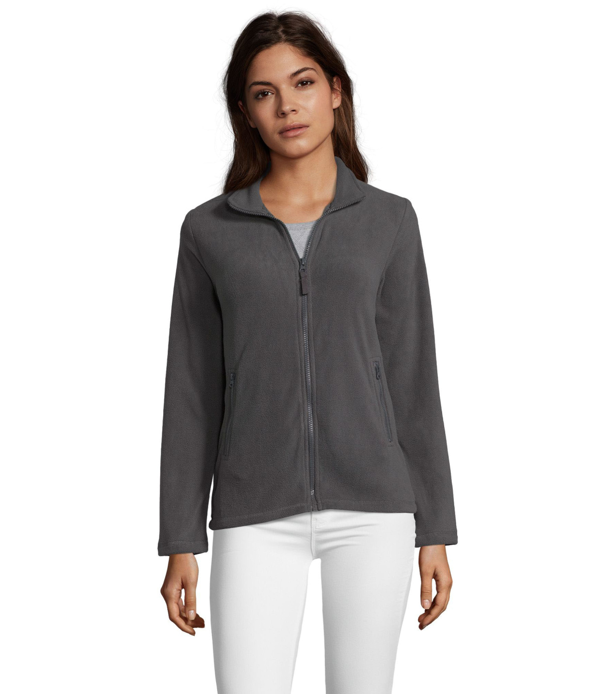Dámská fleecová mikina s vyším límečkem na zip. 2 boční kapsy na zip.