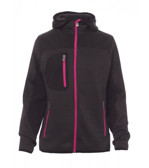 Technická mikina kombinovaná se softshellovými vsadkami v černé barvě. Dvoubarevné provedení s utěsněným celopropínacím zipem SBS. Má tvarovanou kapuci s dvojitým prošitím, tenký elastický lem na rukávech a spodním okraji. Praktické uspořádání kapes zahrnuje dvě boční kapsy na zip a jednu kapsu na hrudi.