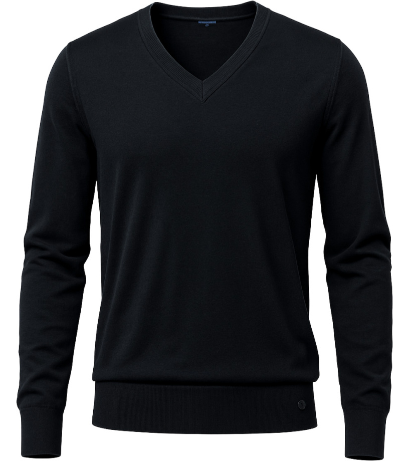 Dámský svetr s výstřihem do „V“ v jednoduchém basic stylu. Vyrobený z jemného úpletu s podílem bavlny a viskózy, který zajišťuje příjemné nošení a dobrý tvarový komfort. Má regular fit střih, dlouhé rukávy a žebrované lemy na rukávech i spodním okraji.