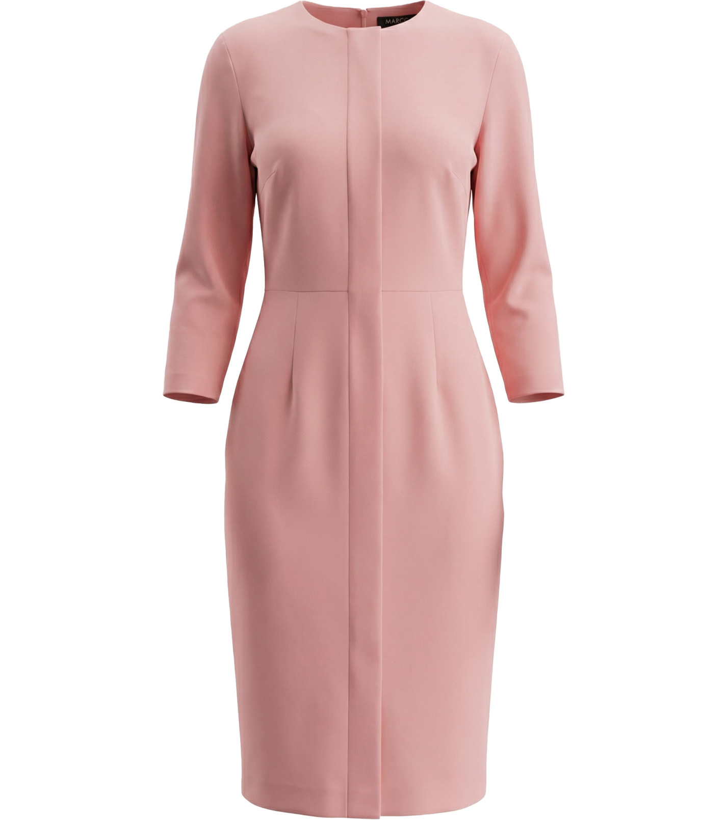 Dámské pouzdrové šaty s 3/4 rukávem. Délka šatů je lehce pod kolena. V přední části jsou šaty zdobeny pruhem látky. V zadní části zapínání na zip a rozparek. Vhodné jak na společenskou událost, ale i do kanceláře.