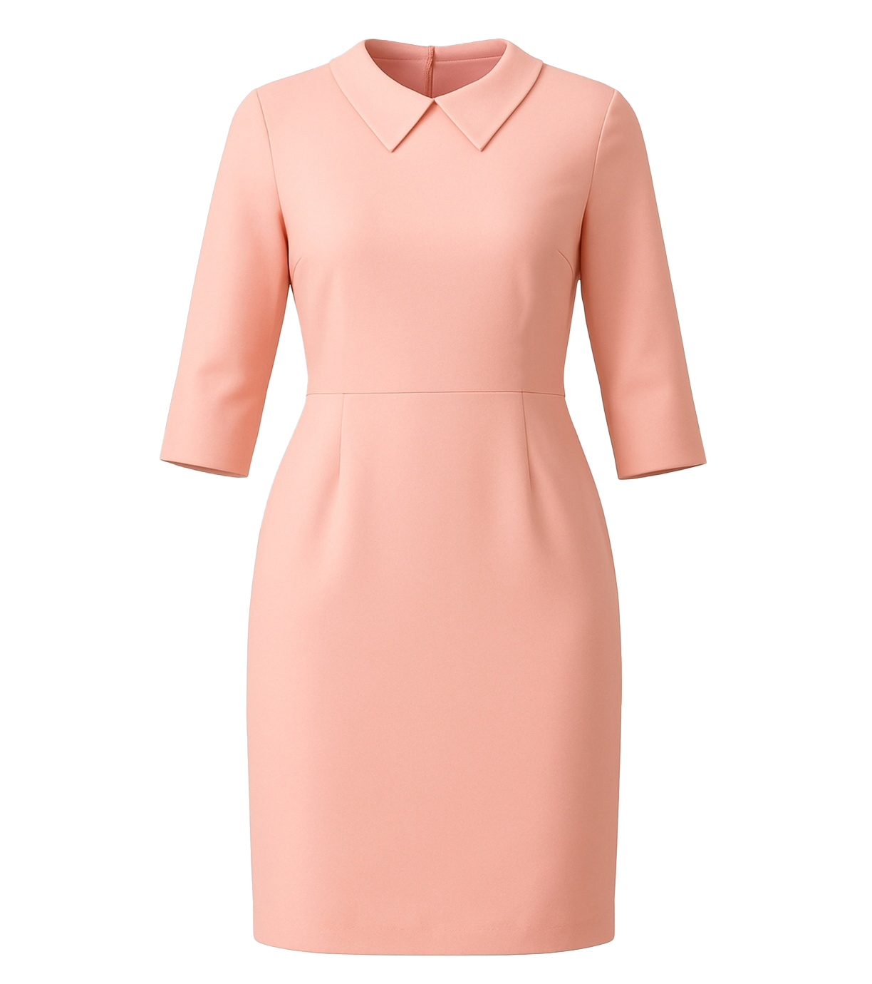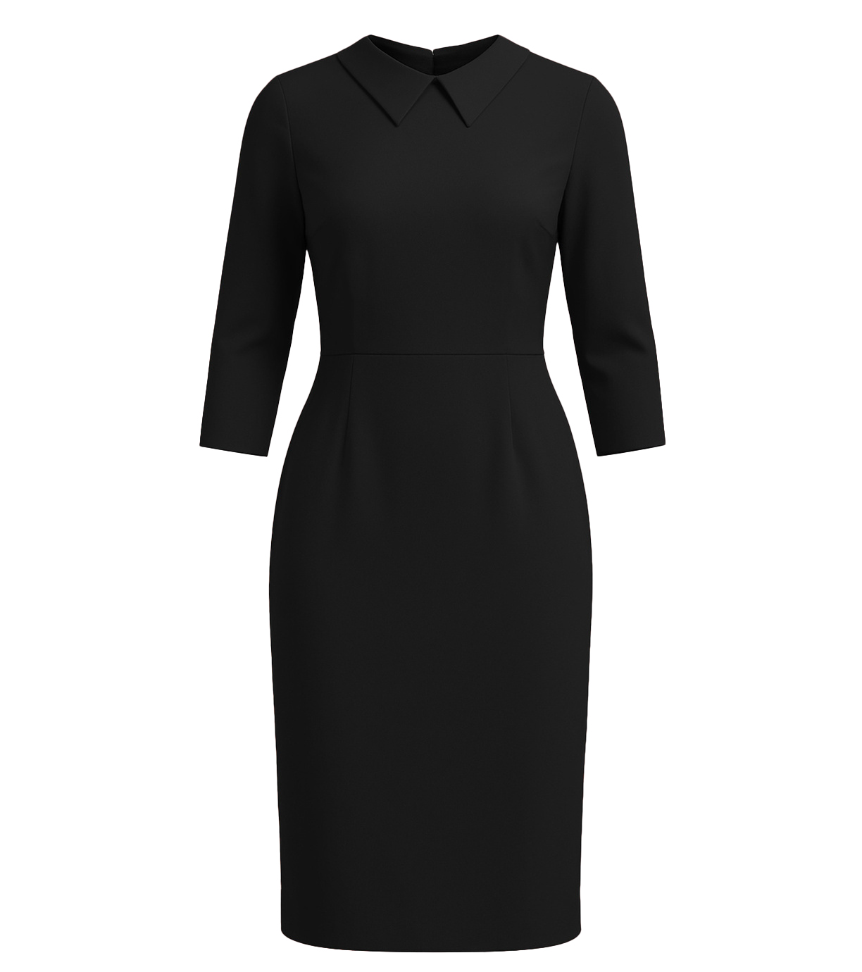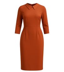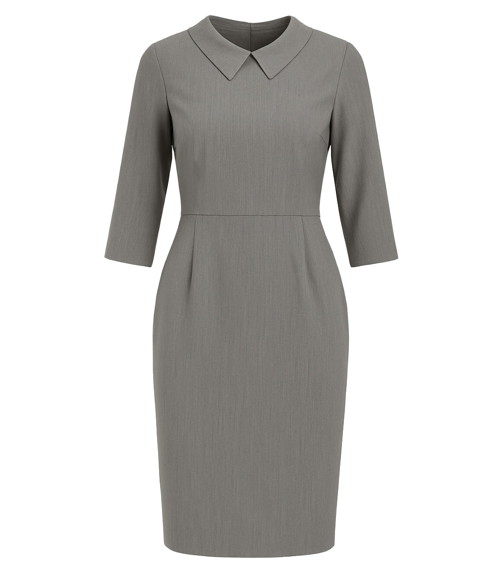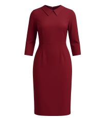 Dámské pouzdrové šaty s 3/4 rukávem jsou vhodné na všechny typy společenských událostí. V přední části jsou záševky. Délka šatů je ke kolenům. Límeček dodává šatům na elegantnosti. Zapínání na zip na zadní části.