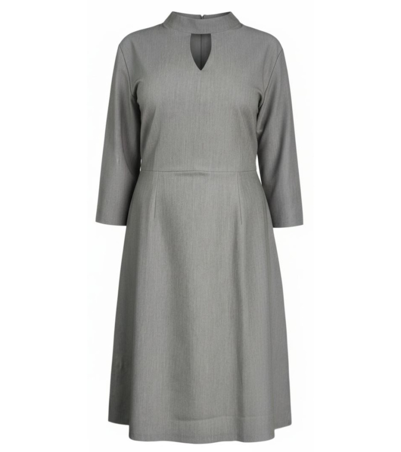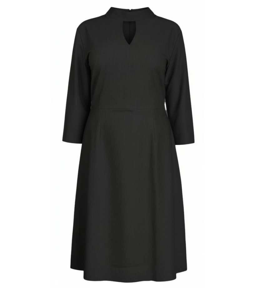 Dámské společenské šaty s ozdobným výstřihem. Zapínání na zip. Šaty mají 3/4 rukáv, v pase jsou přestřiženy a sukně se lehce rozšiřuje.
