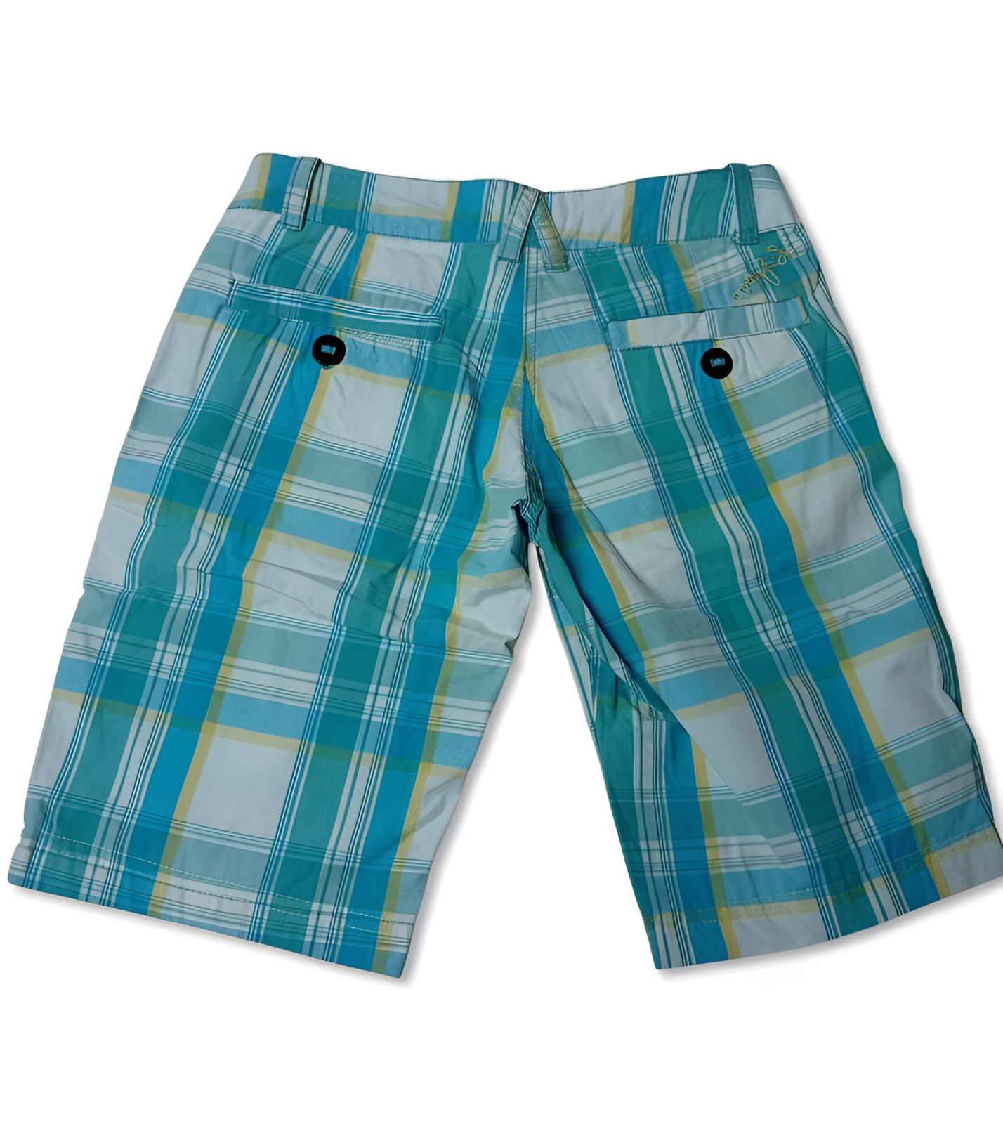 Dámské šortky v tyrkysovo-bílé kostkované barvě jsou ideální pro letní dny i volnočasové aktivity. Jsou vyrobeny z lehkého, prodyšného a příjemného materiálu, který zajišťuje pohodlí po celý den. Mají praktické kapsy, zapínání na zip a knoflík a moderní střih, který lichotí postavě. Skvělé pro dovolenou, procházky i běžné nošení.