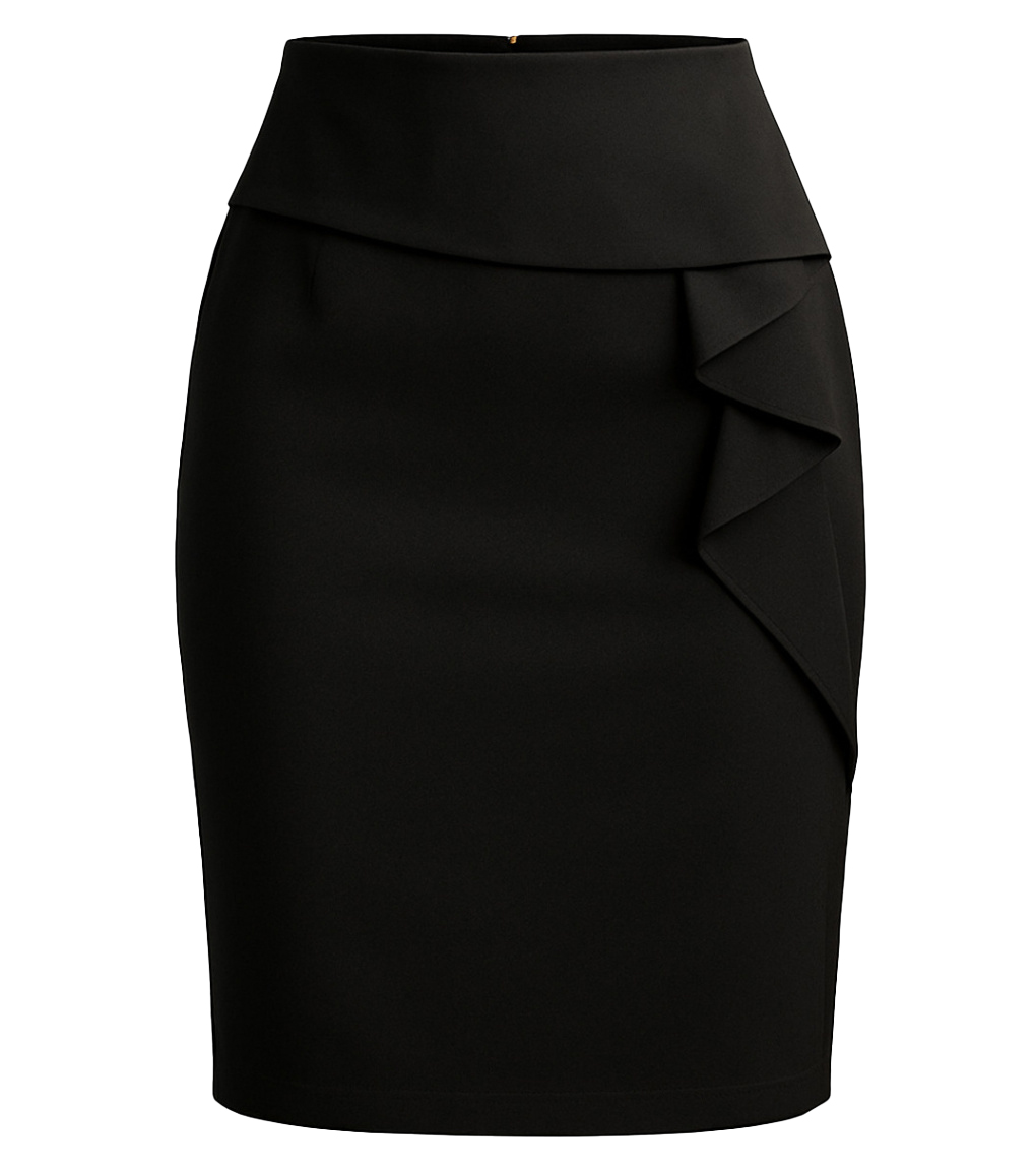 Elegantní pouzdrová sukně s volánovým detailem. Tato stylová pouzdrová sukně je ideální volbou pro formální i společenské příležitosti. Vysoký pas krásně zvýrazňuje siluetu a působí velmi žensky. Asymetrický volán na boku dodává modelu jedinečný a sofistikovaný vzhled. Díky střihu, který přiléhá k tělu, podtrhne vaše křivky a zároveň zůstává pohodlná po celý den.