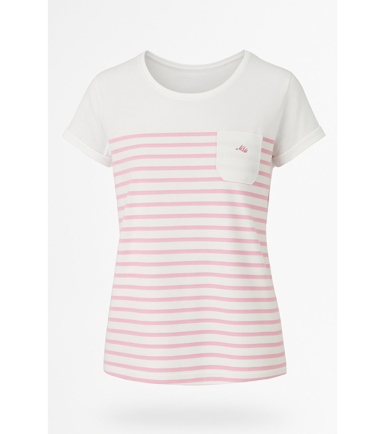 Dámské lehké bavlněné tričko Mustang s jemným pruhovaným vzorem v bílo-růžové kombinaci. Vyrobené z příjemné a prodyšné 100% bavlny, která zajišťuje pohodlí po celý den. Krátké rukávy s ohrnutým lemem a kulatý výstřih doplňuje malá náprsní kapsička s decentním logem Mustang M32. Ideální pro každodenní nošení během teplých dnů.