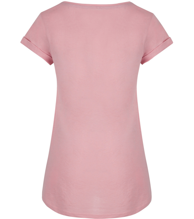 Dámské triko ALIENA je pohodový volnočasový svršek pro celou řadu aktivit. Má krátký rukáv, delší zadní díl a potisk na přední straně. Je ušité z bavlny a polyesteru, proto se méně mačká než klasická bavlněná trička.