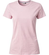 Dámské tričko s krátkým rukávem a kulatým výstřihem, 1,5 cm pružný žebrovaný lem ze směsi spandex u krku s vrchním prošíváním na přední straně, barevně kontrastní vyztužovací páska od ramene k rameni viditelná na límečku, pružné švy, postranní sešití.