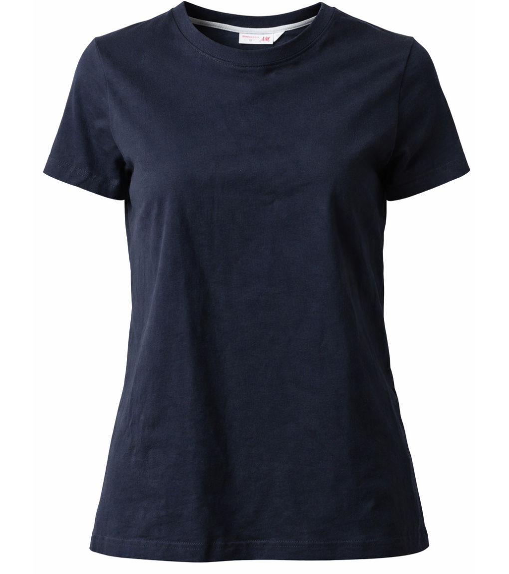 Dámské tričko s krátkým rukávem a kulatým výstřihem, 1,5 cm pružný žebrovaný lem ze směsi spandex u krku s vrchním prošíváním na přední straně, barevně kontrastní vyztužovací páska od ramene k rameni viditelná na límečku, pružné švy, postranní sešití.