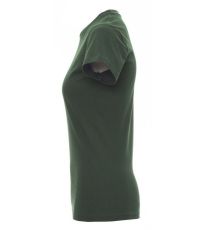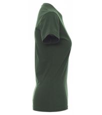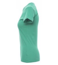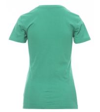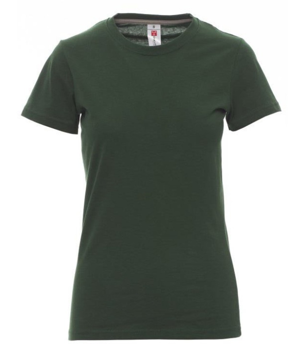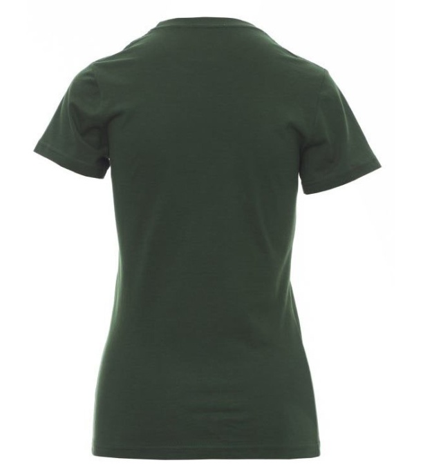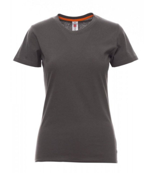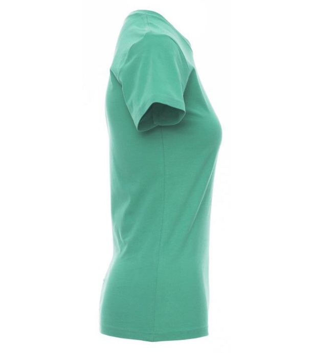 Dámské tričko s krátkým rukávem a kulatým výstřihem, 1,5 cm pružný žebrovaný lem ze směsi spandex u krku s vrchním prošíváním na přední straně, barevně kontrastní vyztužovací páska od ramene k rameni viditelná na límečku, pružné švy, postranní sešití.
